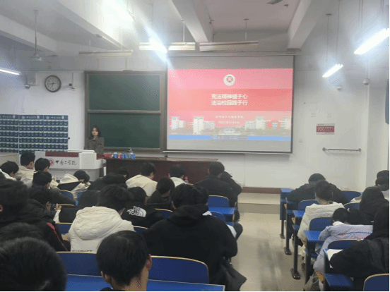 为深入弘扬宪法精神,增强学生法治观念,营造尊法学法守法用法的校园文化氛围,2025年12月4日,beat365体育官方网站在2号实验楼337组织开展了“宪法精神植于心 法治校园践于行”的主题学习活动。本次活动由学院兼职辅导员李铭同学主持,各年级学生代表150余人参与此次活动。